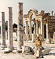 as a port on the Aegean Sea, the ruin city now lies several miles inland, and the original harbor looks out over a dry valley, with not a drop of water in sight. The city became famous for its TEMPLE OF ARTEMIS, dedicated to the Greek goddess ARTEMIS and considered one of the 'Seven Wonder of the Ancient World'.