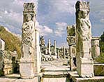 Ephesus adorned with splendid of monuments, theatres, temples, agoras, gymnasiums, libraries, which it shows here in big picture on the left above. The protectors of the was ARTEMIS, the goggles, whose temple is considered one of the Seven Wonders Of The World.
