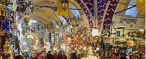 Istanbul's famous bazaar quarter stretches from the famous GRAND or COVERED BAZAAR 'Kapali Carsi' in Turkish, (kah-pah-luh chahr-shuh) in BEYAZIT district down to the SPICE BAZAAR> ('Misir Carsisi' in Turkish)... near the GALATA BRIDGE('Galata koprusu') in EMINONU district.